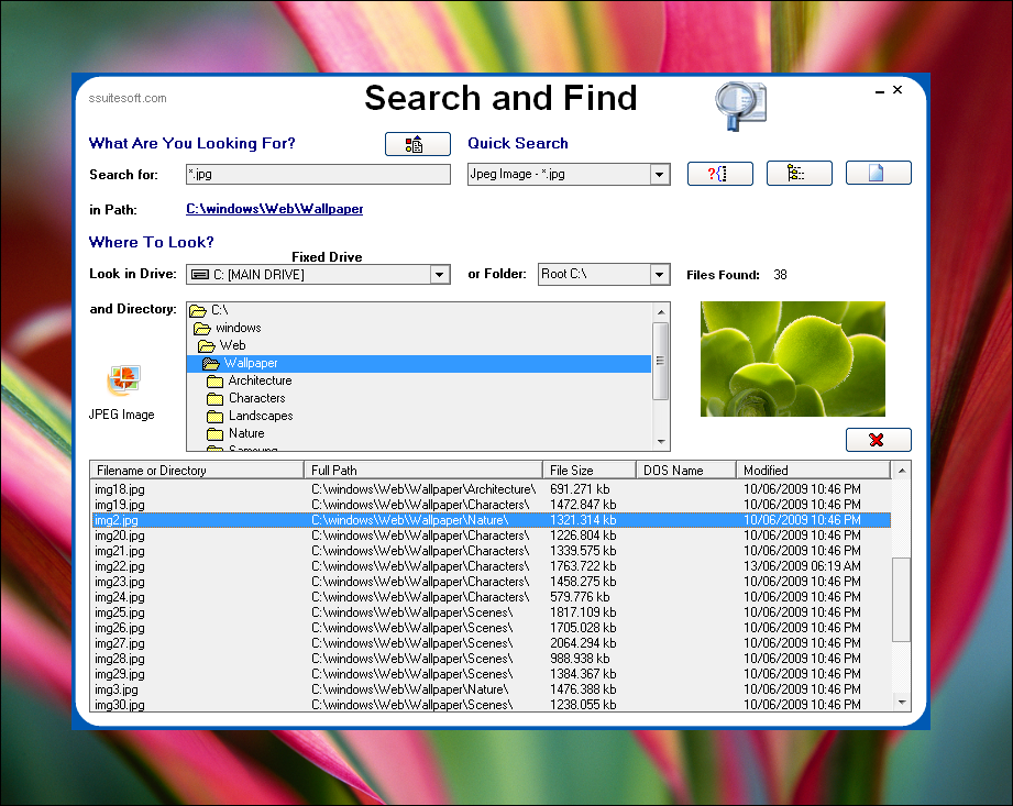 SSuite Desktop Search and Find is a lightweight, portable application that can help you locate and access various files on your computer in a quick, convenient manner. It comes with a simple user interface and straightforward functions.