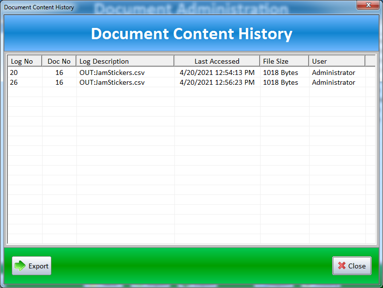 - View unique log file history for each document on user access