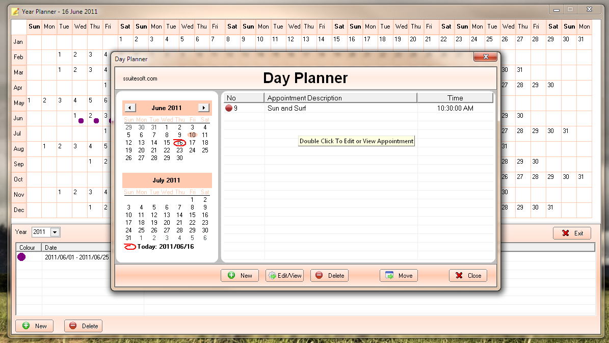 As the name of this piece of software implies, SSuite Office - Year and Day Planner Portable lets you organize your appointments when you're on the go. It can be seamlessly handled, even by inexperienced users.