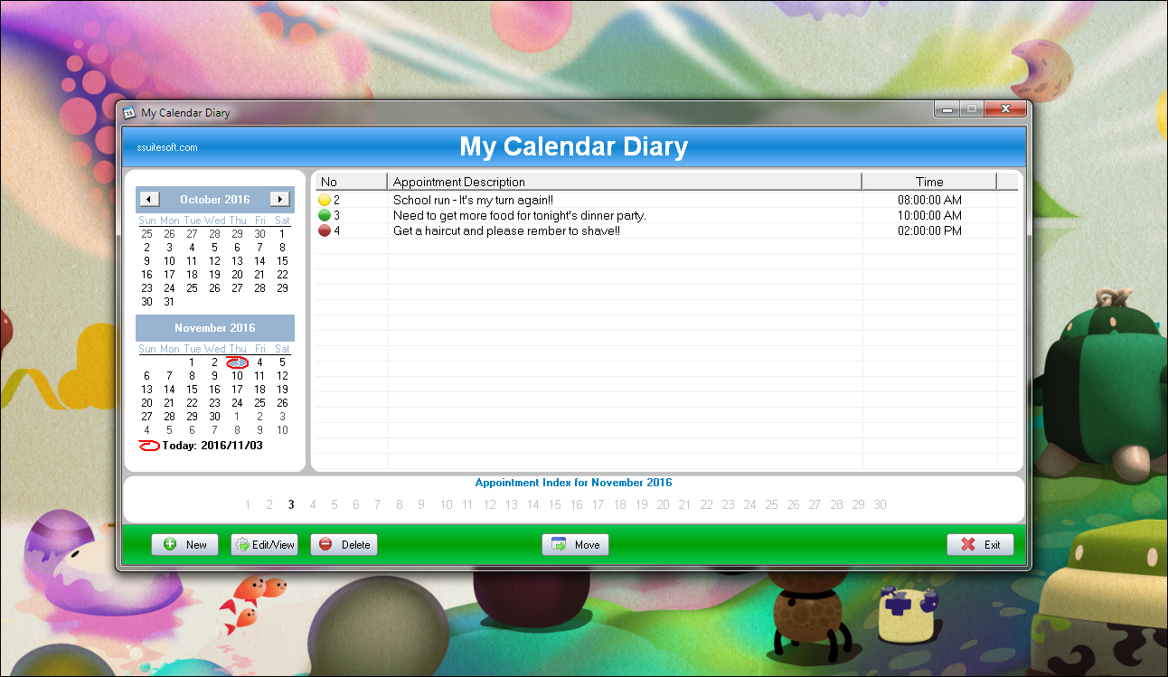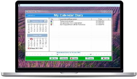 It is also possible to edit and print appointments, as well as to move them to another date. Once you have made several inputs, you can probably notice the dates which hold appointments become bold, so you can easily spot them on the calendar.