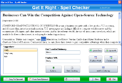 SSuite Office's "Get it Right" spell checker provides you with a handy means of checking the spelling in order to make sure your words are correctly typed/written. It is fully featured as well, with a large selection of dictionaries, and custom import / export dictionary support.
