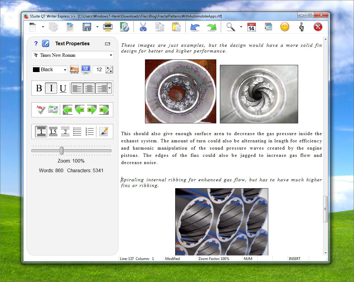 A number of available features give you a fine degree of control over the formatting of text, pages, sections of documents, and also entire documents. You may also save your documents in a variety of industry standard formats like pdf, rtf, doc, txt, and our own presentation format ssp. Insert special characters, emotional icons, pictures, and images into your writing for a more colourful display of your thoughts and ideas. Also included are a spell checker, mail merge editor, and an envelope printer.