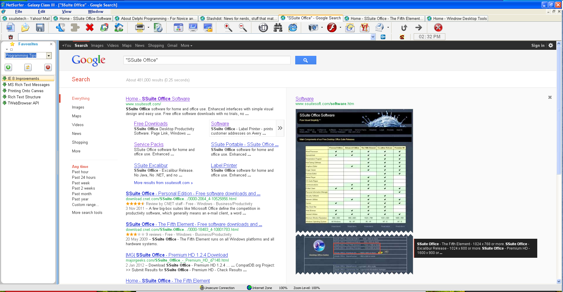 This powerful spreadsheet has all the tools you need to calculate, analyse, summarise, and present your data in numerical reports or colourful graphics. A fully-integrated help system makes entering complex formulas a breeze. Pull in external data using ODBC, sort it, and produce subtotals and statistical analyses. SSuite Accel has also ODBC connectivity to query any database on your PC through SQL.