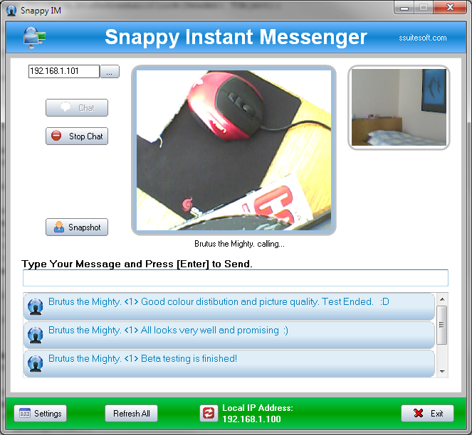 Server-less IM Video chatting on any LAN or Wi-Fi network...